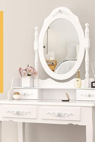 $79.23 $79.23Vanity Table Set With 4 Drawer, Makeup Dressing Table W Cushioned Stool, Girls Women Bedroom Furniture Set Oval MirrorSpecification Product Information Item Code:W2837P197800 Product Type:General Item Product Name:Vanity Table Set with 4 Drawer, Makeup Dressing Tab... View full details